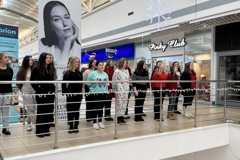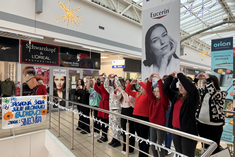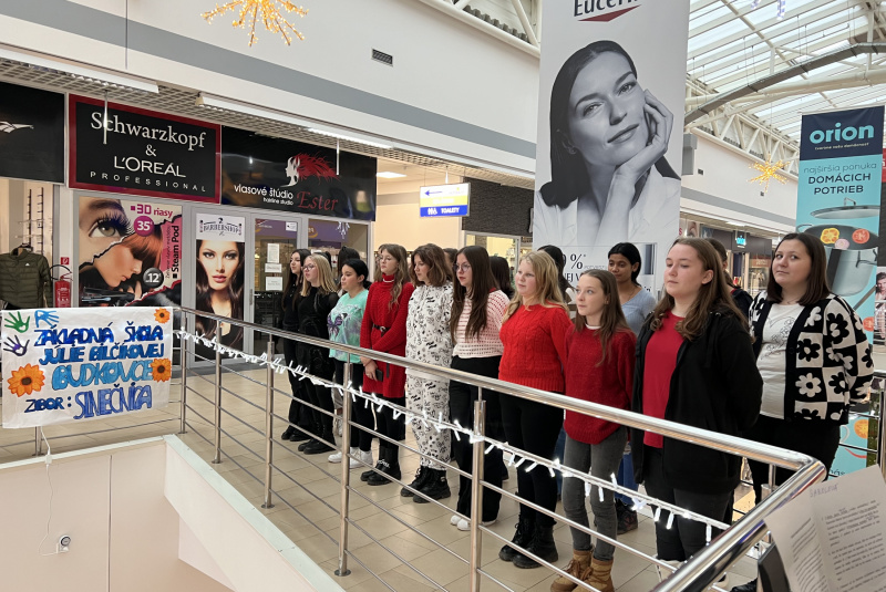 Sviatočné nakupovanie všetkým zákazníkom spríjemňoval detský spevácky zbor SLNEČNICA zo základnej školy Júlie Bilčíkovej z Budkoviec.